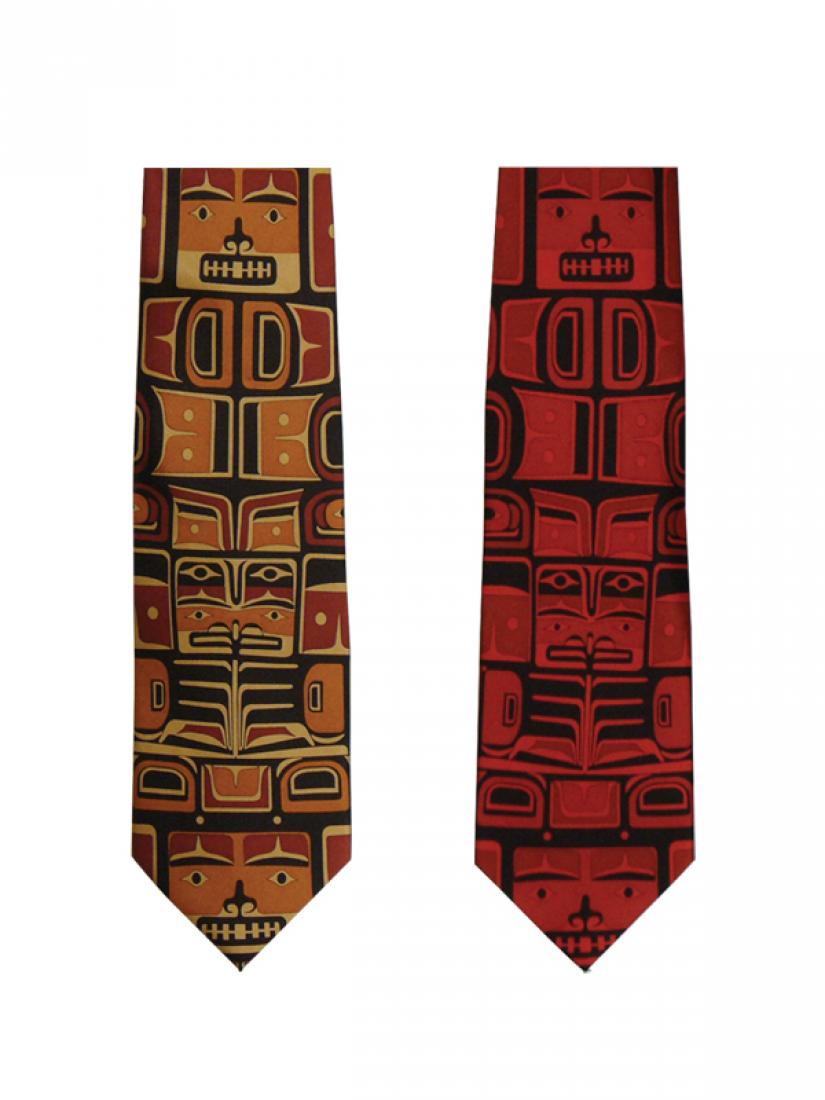 Boxed Silk Tie with Chilkat design by Bill Helin is available in Rust or Red.