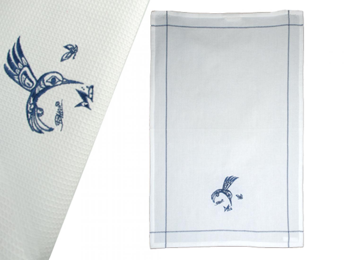 Embroidered Waffle Tea Towel with Hummingbird Design by Bill Helin