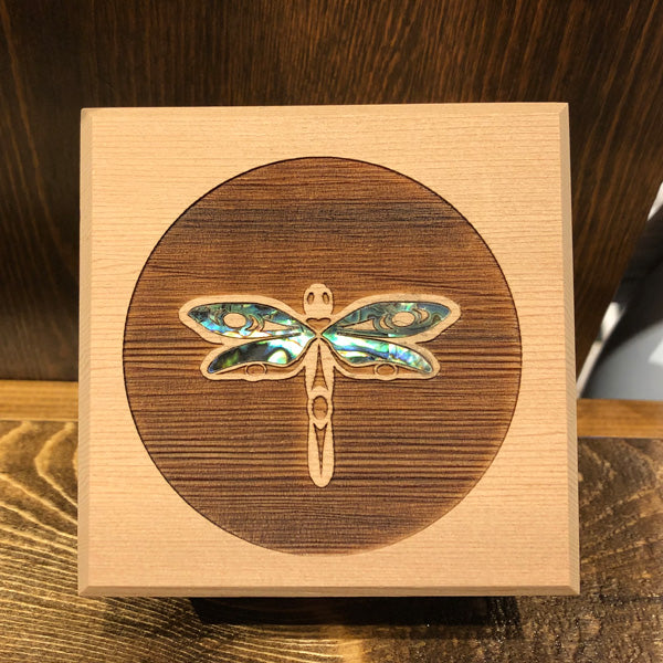 In British Columbia, First Nations Peoples used these unique, and beautifully adorned traditional containers to store our most precious of possessions. These containers are commonly known as “Bentwood Boxes”. Aside from their decor, one of the aspects distinguishing the Bentwood Box from other wooden boxes lies in its construction. The body of the container is constructed using only a single piece of West Coast cedar! The cedar is grooved on the corners and thoroughly steamed in order to painstakingly bend the piece into what you see before you.