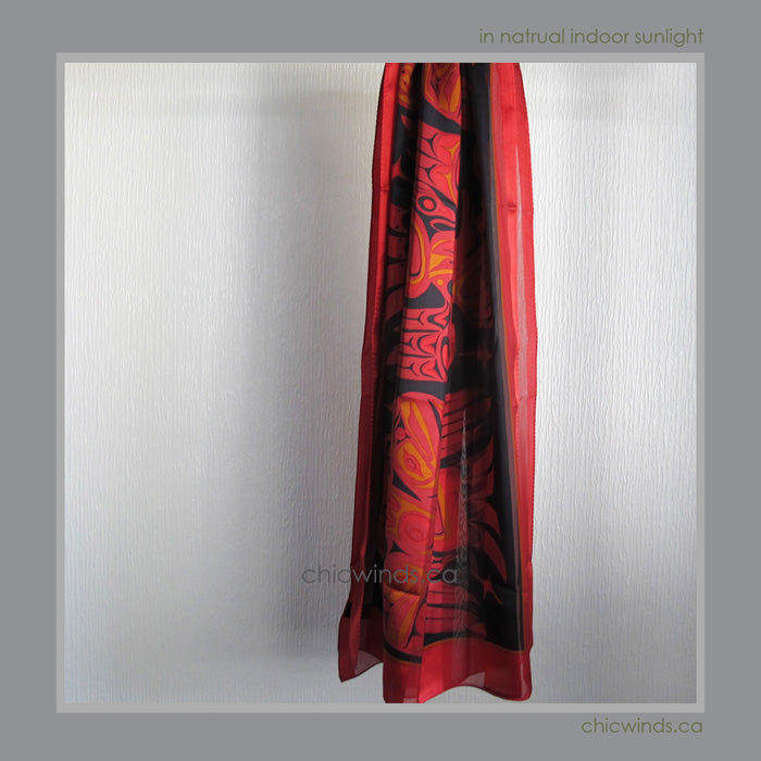Bill Helin Native Art Silk Scarf - Raven (Burnt Red)