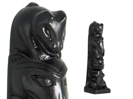 Black Stone Totem Pole: Bear, Raven and Beaver 4 1/2"H