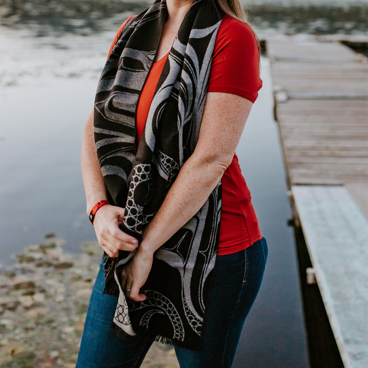 Stylish and comfortable brush silk scarves with a soft and warm with cashmere feel, reversible pattern on each side, packaged in a black box for effortless gift-giving.