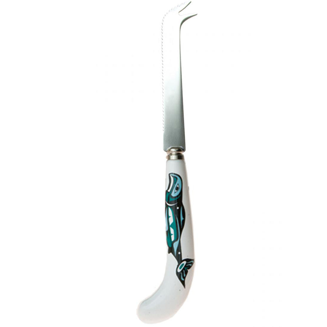 Ceramic and Stainless Steel Cheese Knife with Salmon design by artist Anthony Joseph.