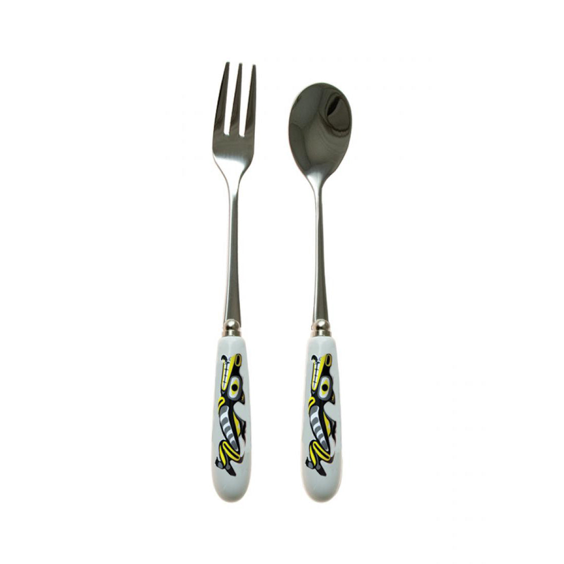 Ceramic and Stainless Steel Fork and Spoon Set with Sea Wolf design by artist Andrew Williams.
