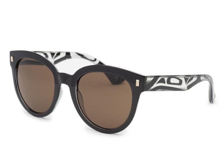 Ladies Sunglasses with Orca/Eagle design by artist Corrine Hunt. This bold, glamourous sunglass is the perfect piece to amplify your fashion game.