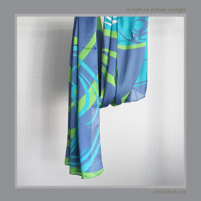 Connie Dickens Native Art Scarf – Raven (Turquoise)
