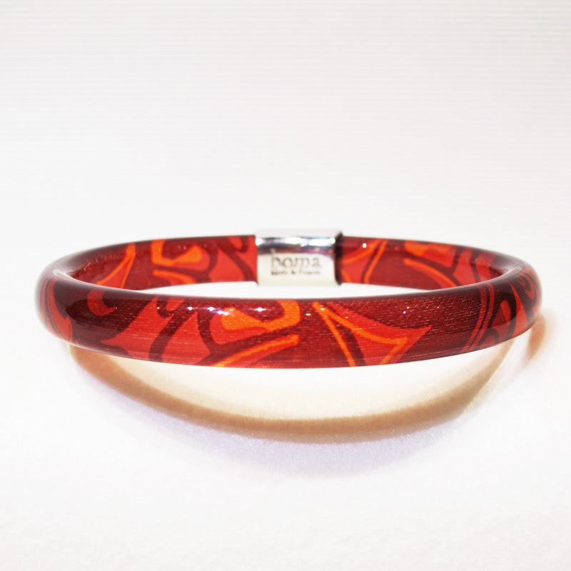 The ancient beauty of fine satin silk combined with designs of First Nations artist Corrine Hunt, to create this contemporary jewelry collection.