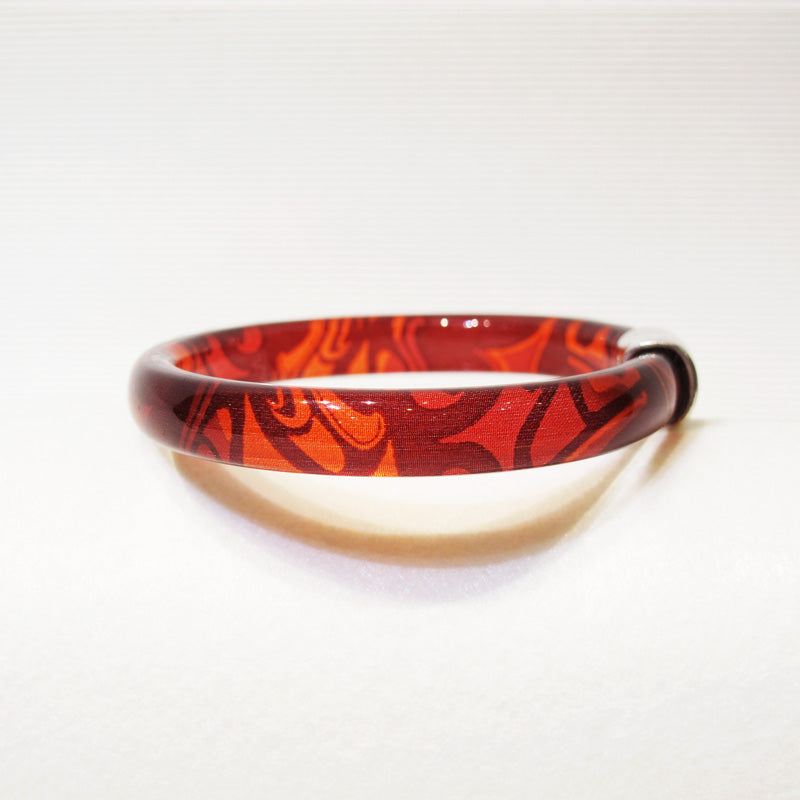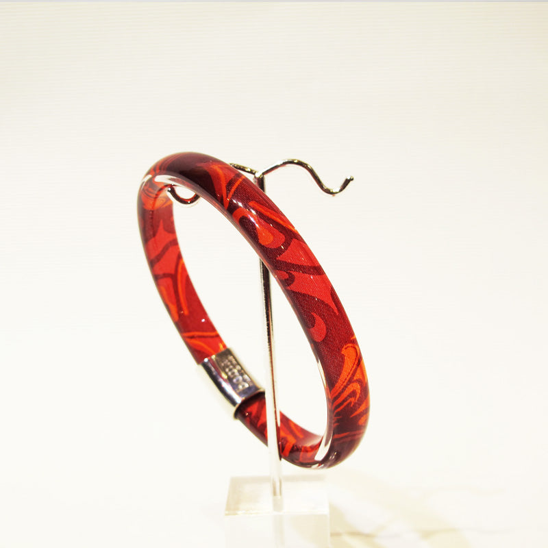 Each piece is unique. Original art printed on silk, and layered in jewelry grade resin with silver pewter accent.