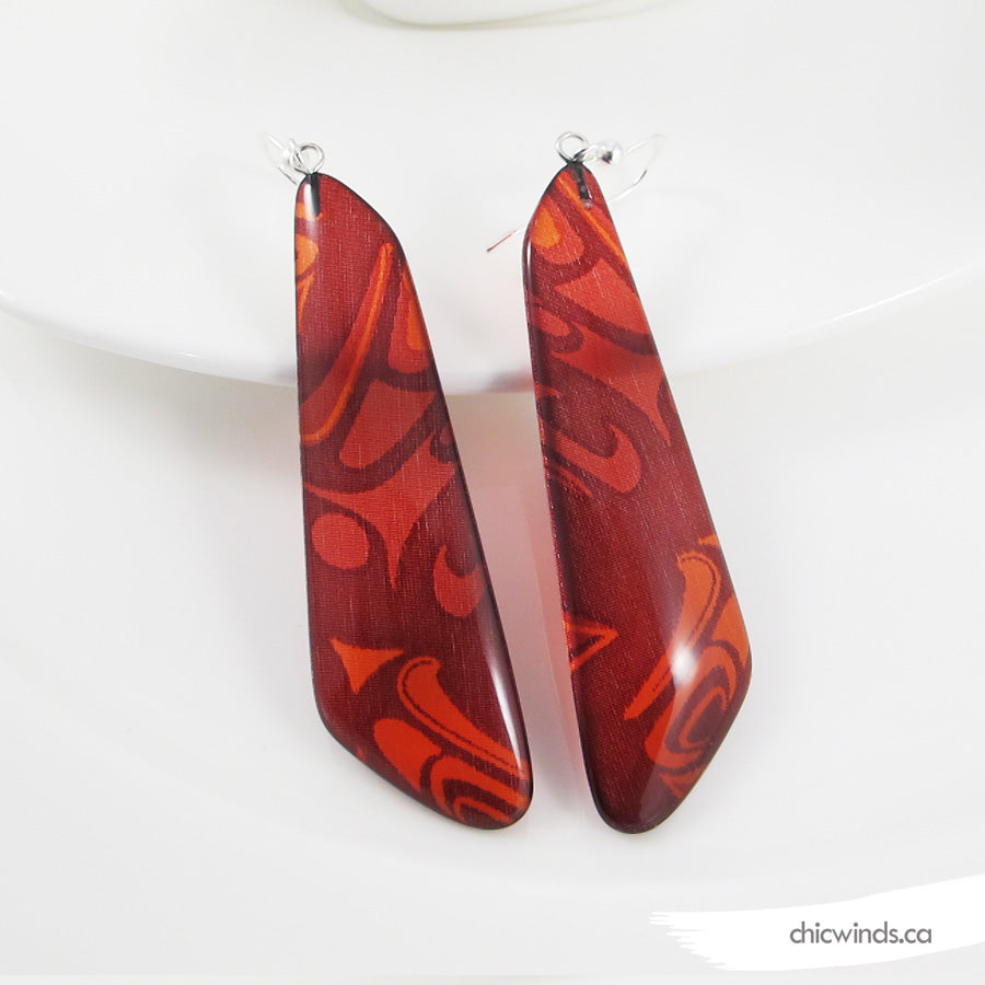 - Features: Original art printed on silk, and layered in jewelry grade resin with Sterling Silver Findings. Each piece is unique.