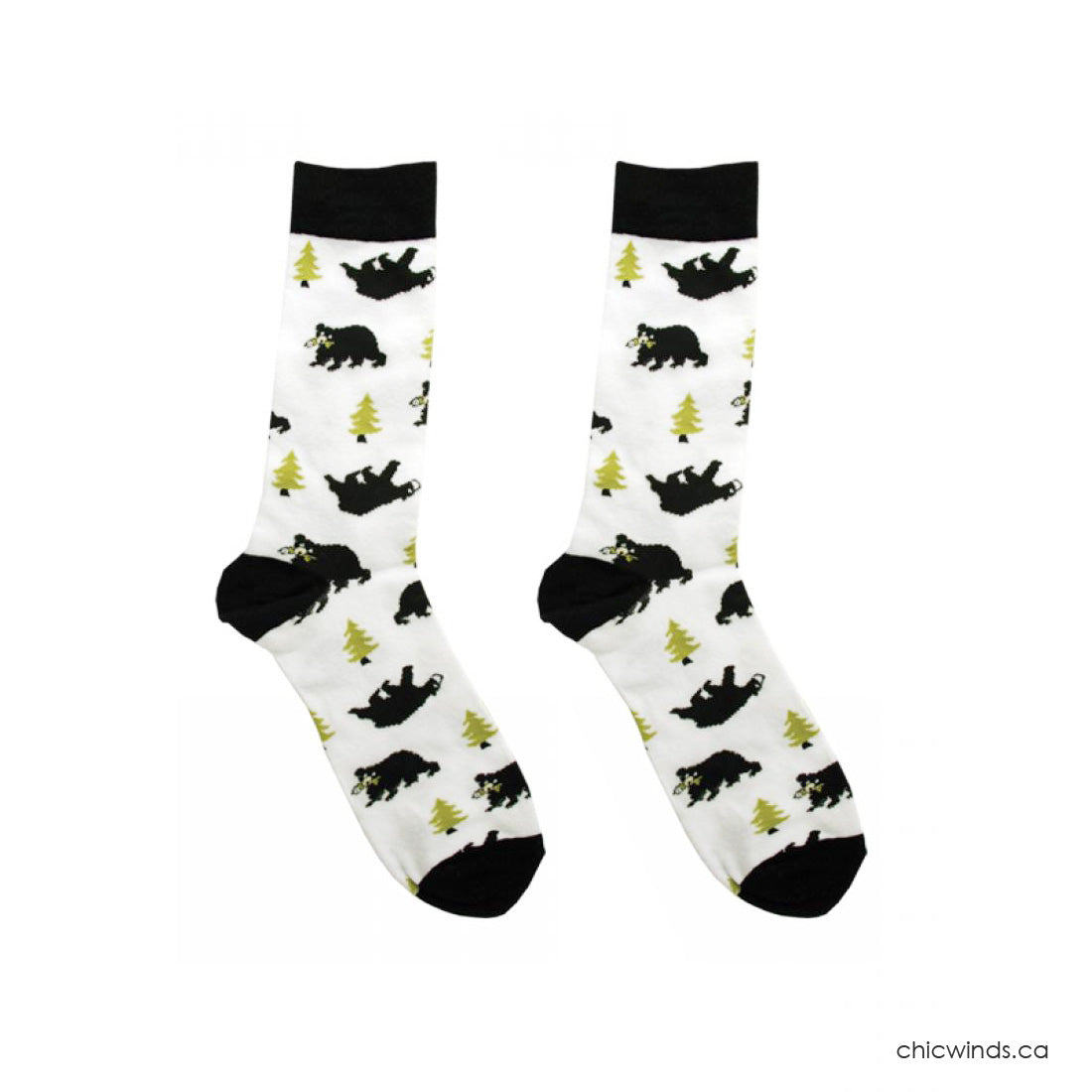 Cotton Crew Socks with Black Bear Design.
