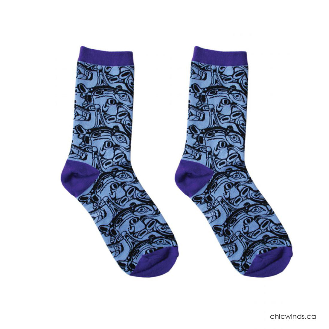 Cotton Crew Socks with the First Nation Art Orca Design.