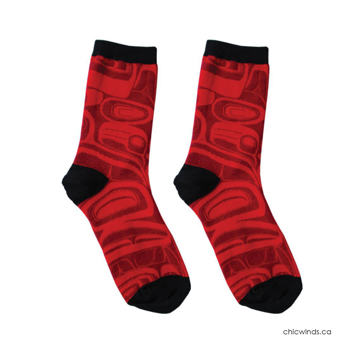 Cotton Crew Socks with the First Nation Art Raven Design.