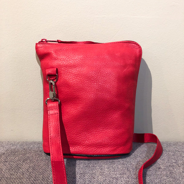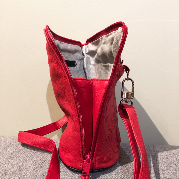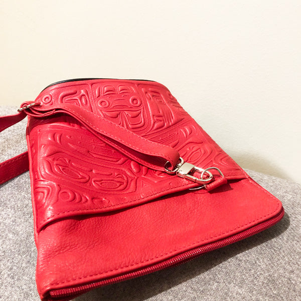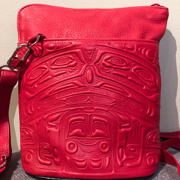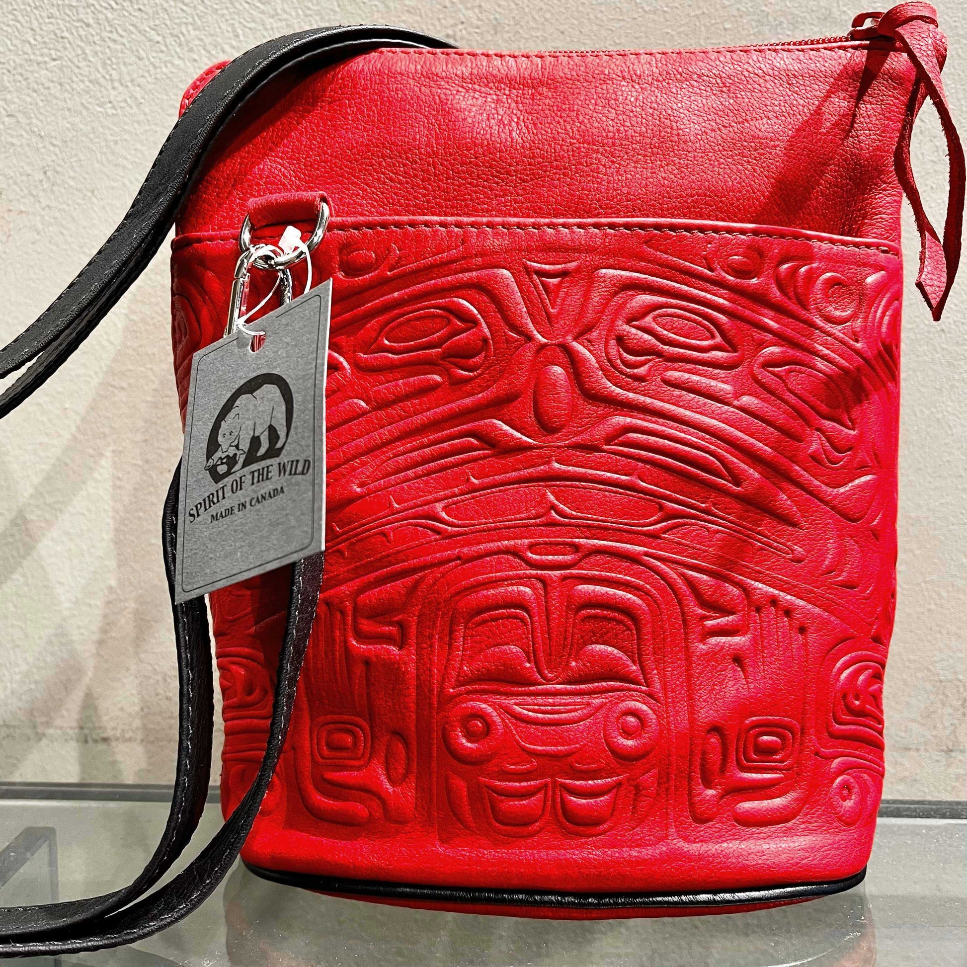 Deerskin Leather Compact Crossbody Bag - Bear Box (Red)