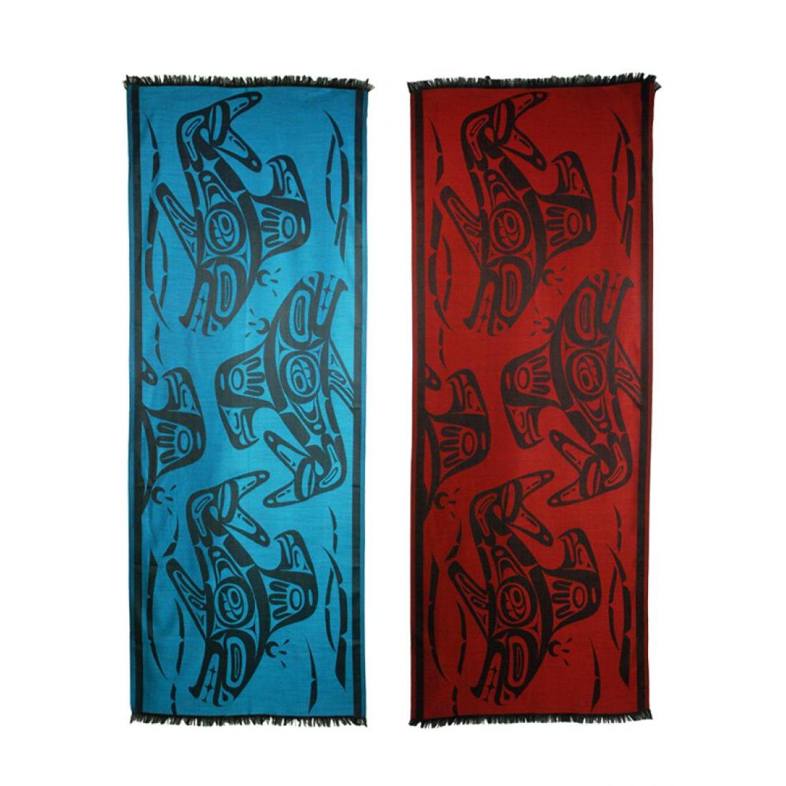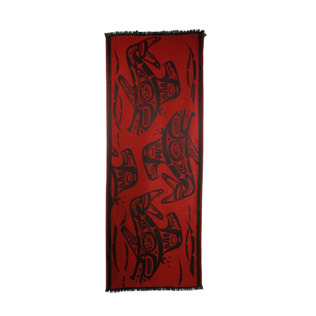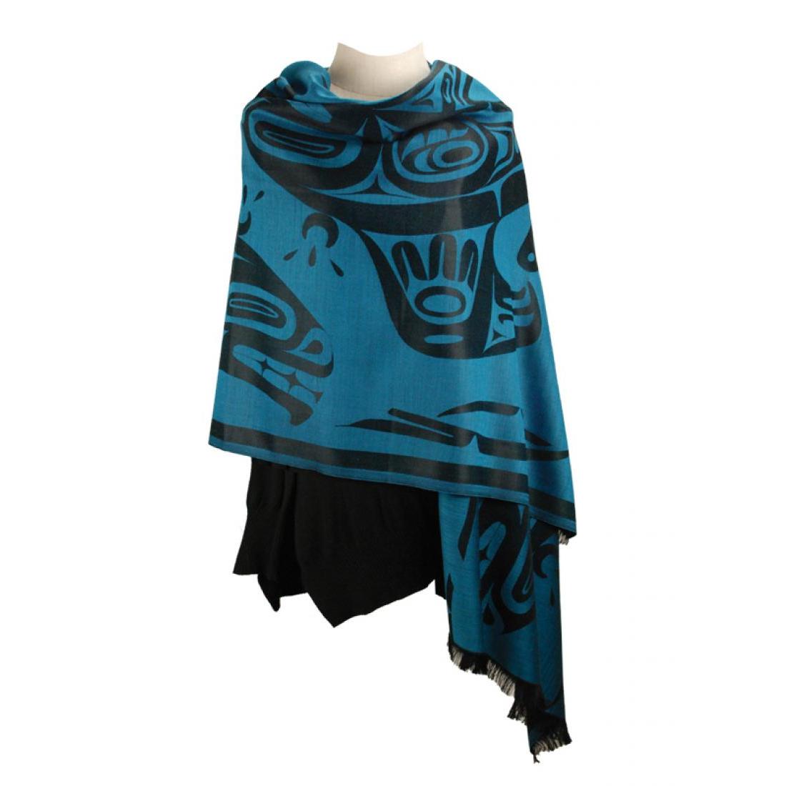 This luxurious silk wool shawl features the powerful Eagle Whale design by Indigenous artist Corrine Hunt.