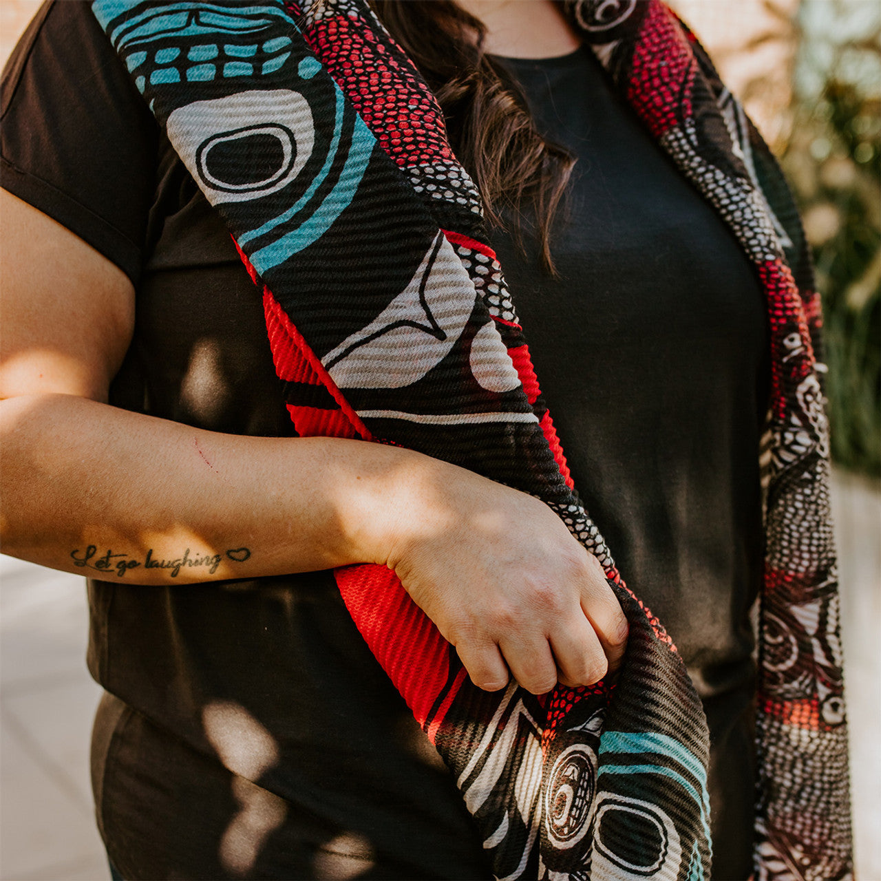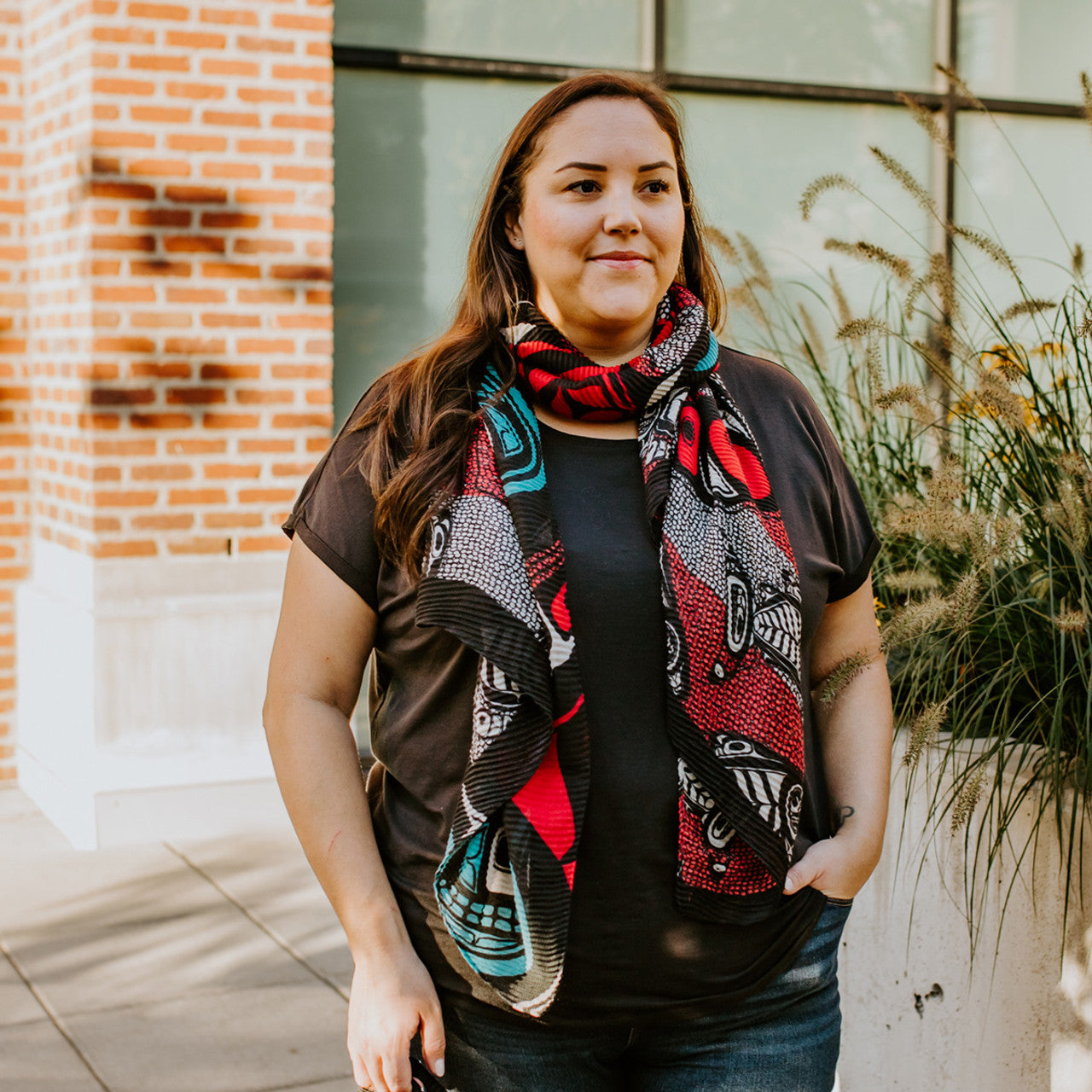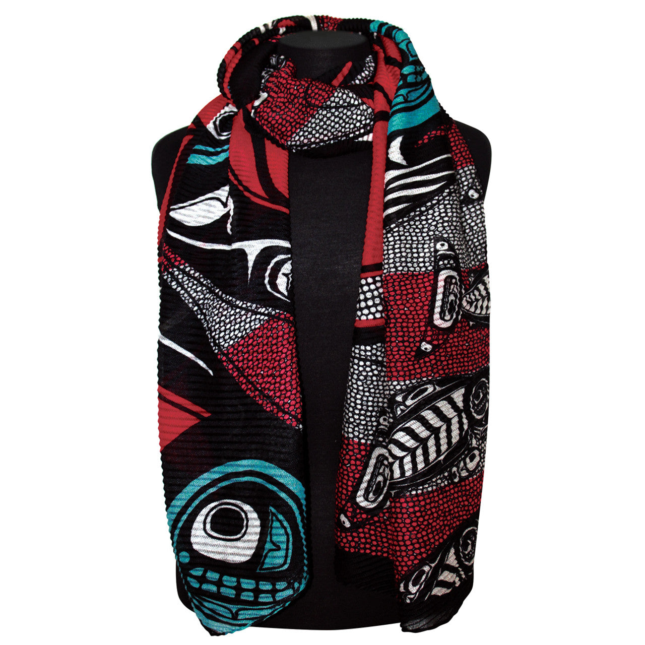 Wrap yourself in bold color and meaning with our Eco Scarf featuring the vibrant Salmon design by Indigenous artist Kwiaahwah Jones. Made from 100% recycled plastic bottles, this scarf is soft, textured, and beautifully lightweight—perfect for adding an artful touch to everyday outfits.