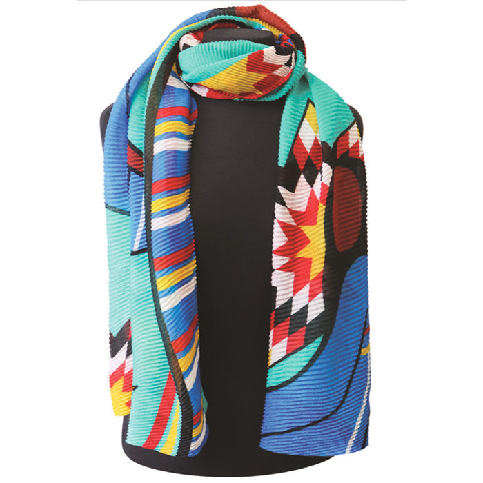 Tight accordion pleats lend luxurious, eye-catching First Nation original art printed.