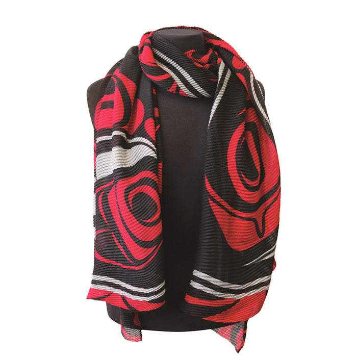 Tight accordion pleats lend luxurious, eye-catching First Nation original art printed.