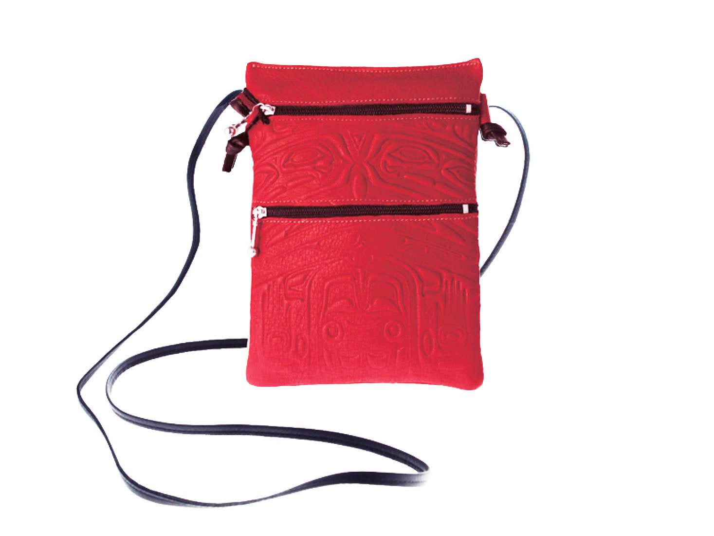Embossed Leather Passport Pouch with Bear Box Design by Clifton Fred, Red, Deer Skin