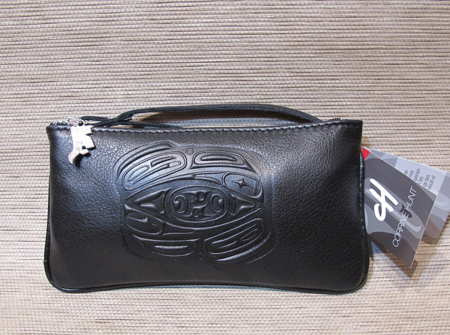 Leather embossed Wristlet Pouch with a Raven Design by Corrine Hunt