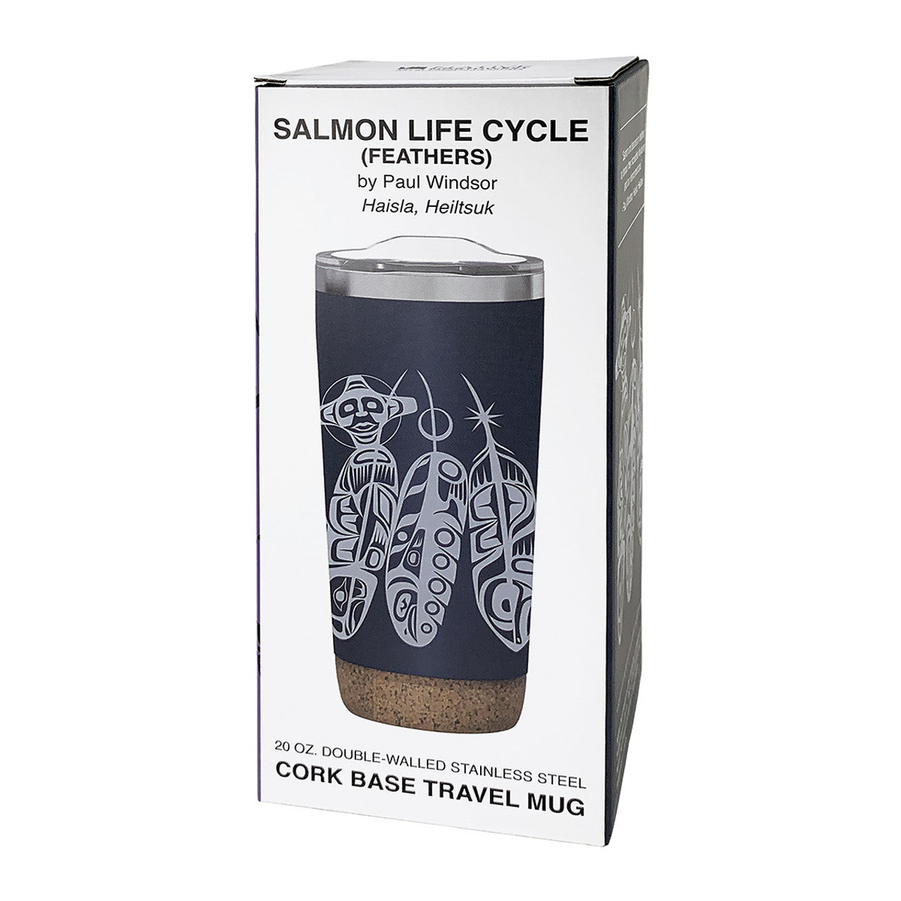 This 20oz mug features original Indigenous artwork by Paul Windsor, combining the feather — a symbol of respect and honour — with the salmon, representing abundance, renewal, and connection to life.