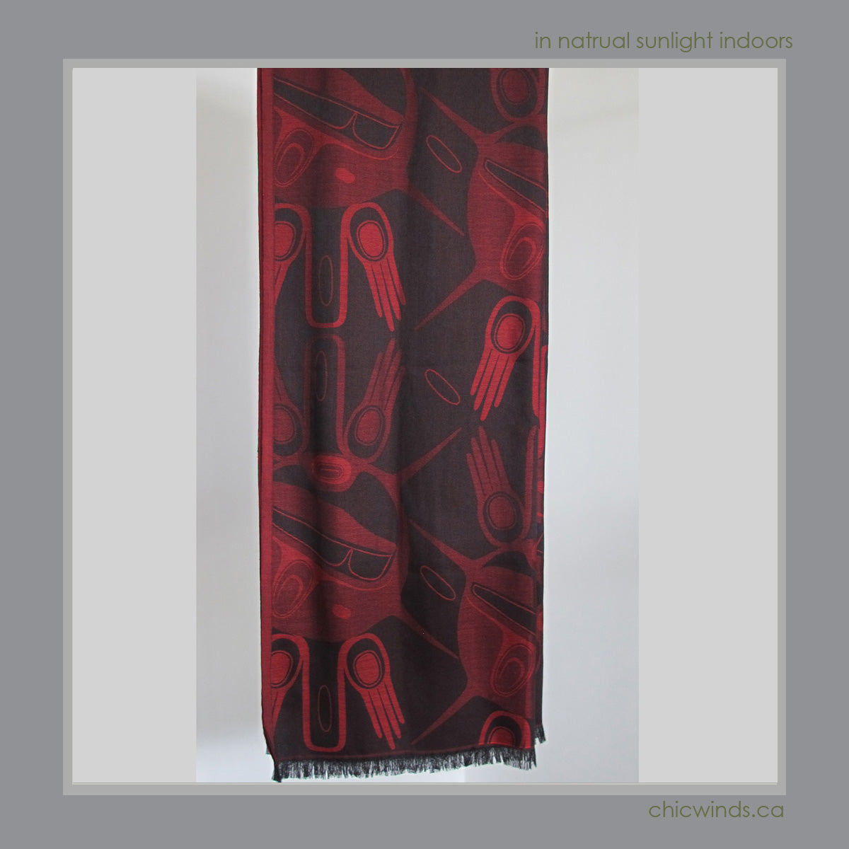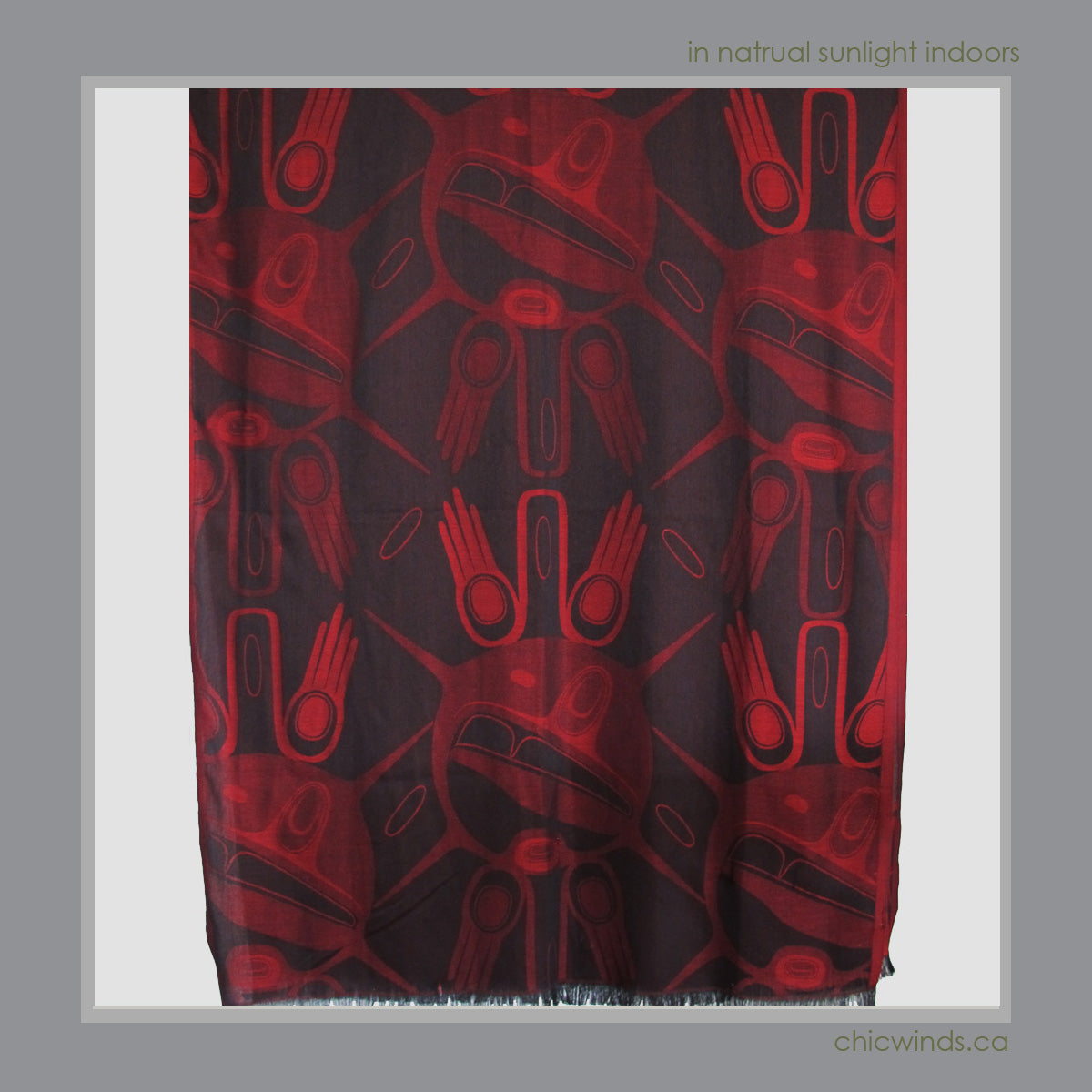Wrap yourself in the timeless artistry of Kelly Robinson's Native Hands design, showcased in a soft, cozy, and elegant jacquard shawl. Perfect for any occasion, it offers both comfort and style. Choose from two striking colorways: Red/Black or Blue.