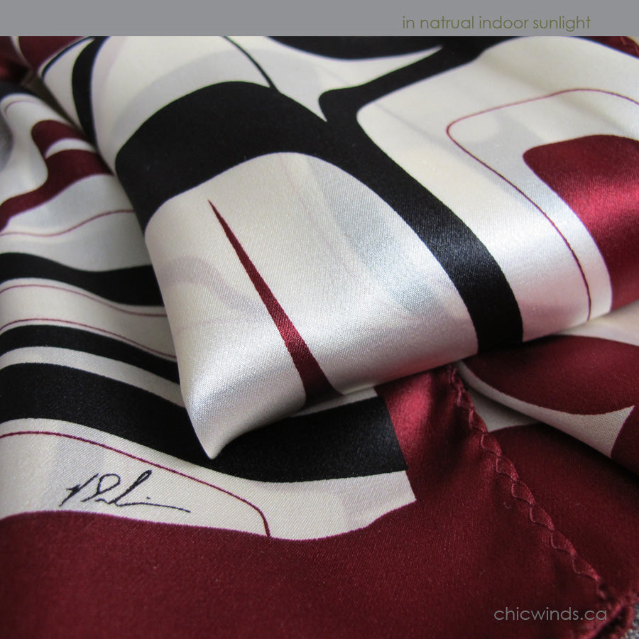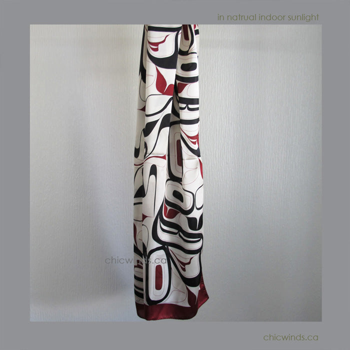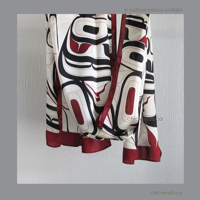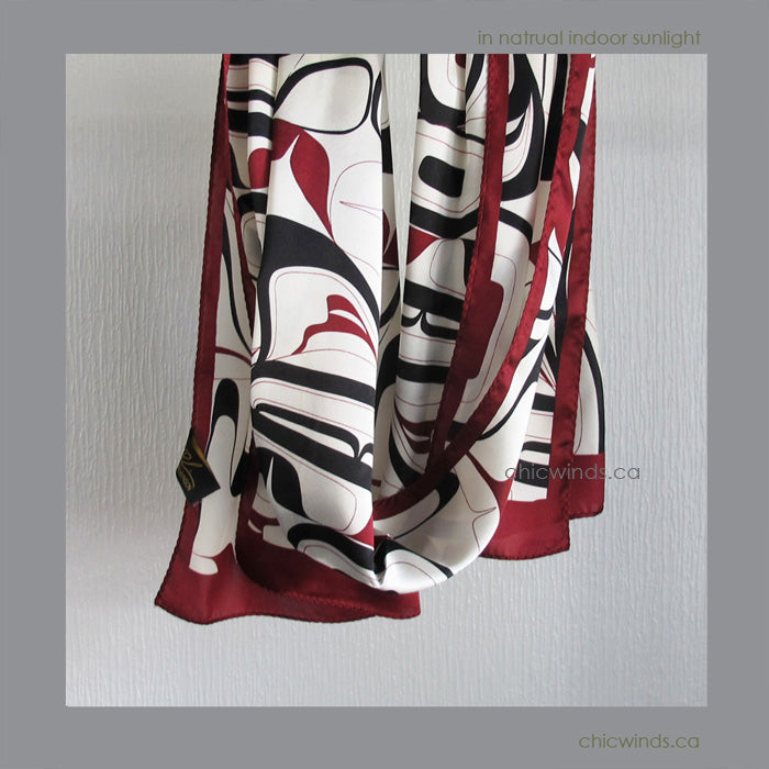 Wear this timeless silk scarf with native original art printed; it’s sure adding an abstract art element to your look.