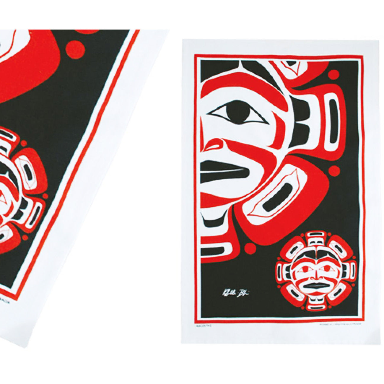 Cotton Tea Towel with Native Art Moon Mask design by Klatle-Bhi.