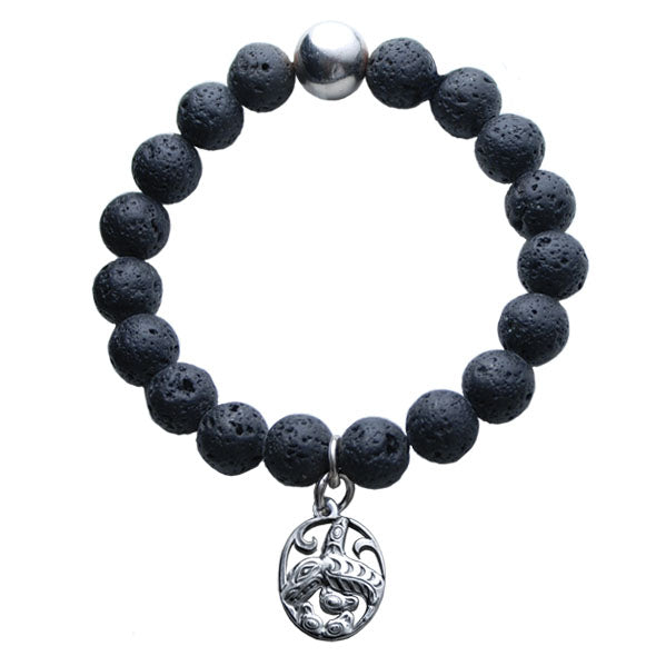 Lava Bead stretch Bracelet with handcrafted Silver Pewter Charm.