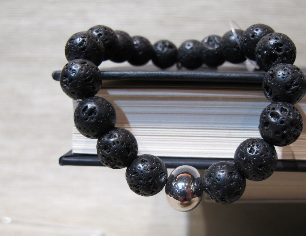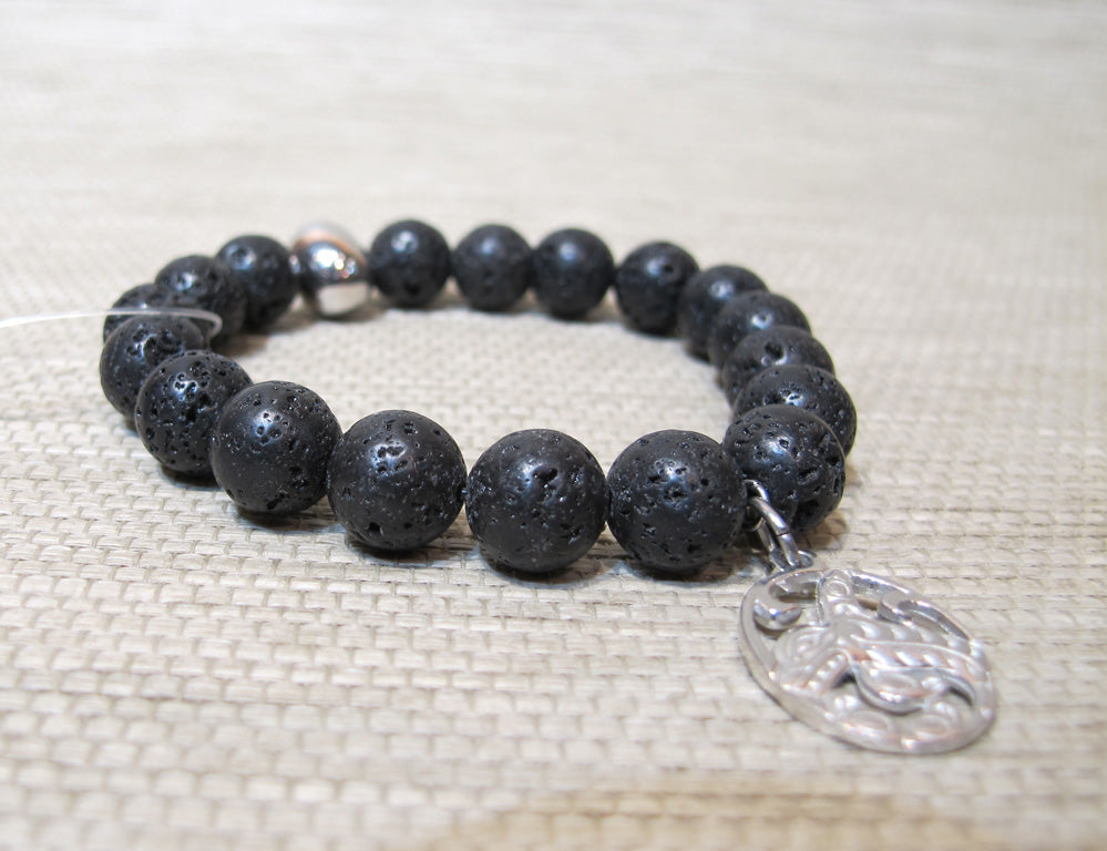 Lava Bead stretch Bracelet with handcrafted Silver Pewter Charm.