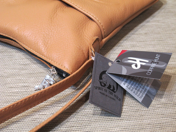 Leather embossed Solo Bag with a Raven Design - Saddle, Leather