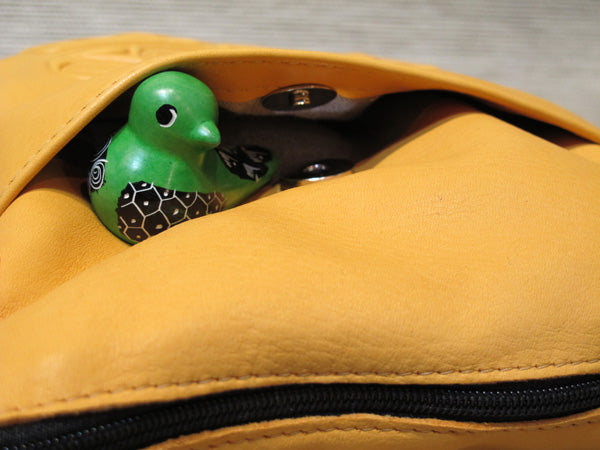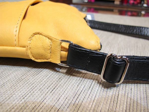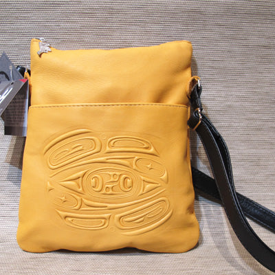 Leather embossed Solo Bag with a Raven Design - Yellow, Deer Skin