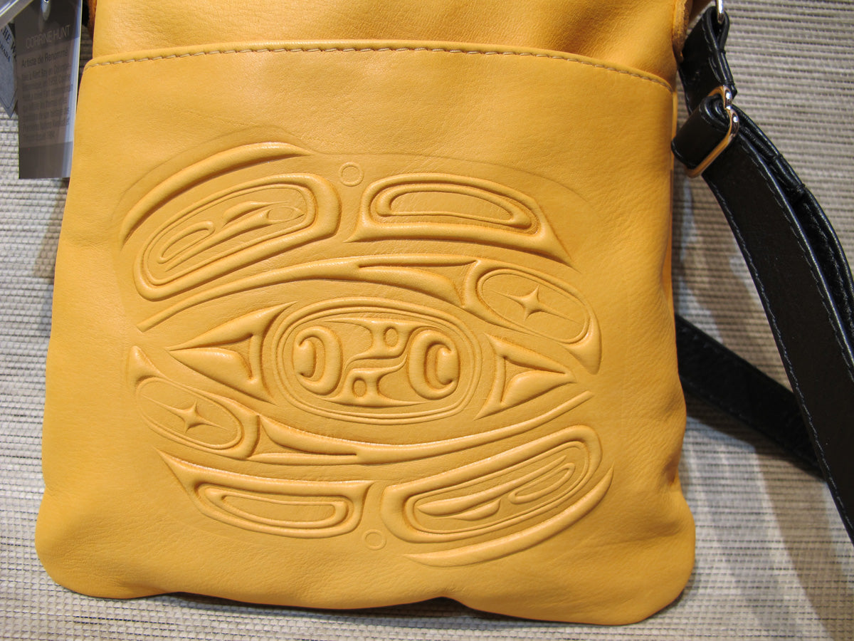 Leather embossed Solo Bag with a Raven Design by Corrine Hunt.