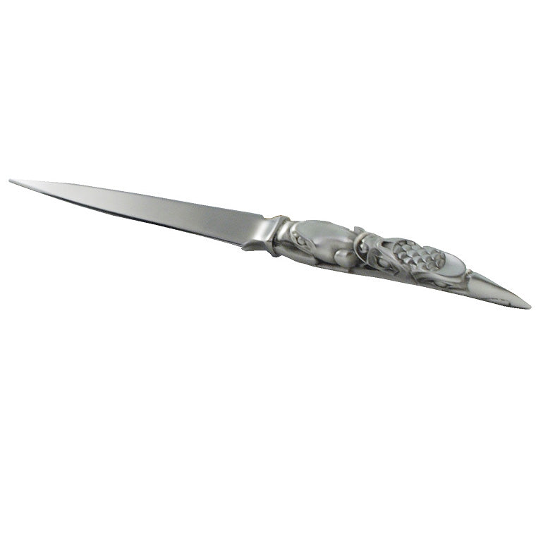 - Letter opener cast in fine, lead free Pewter, stainless steel blade.