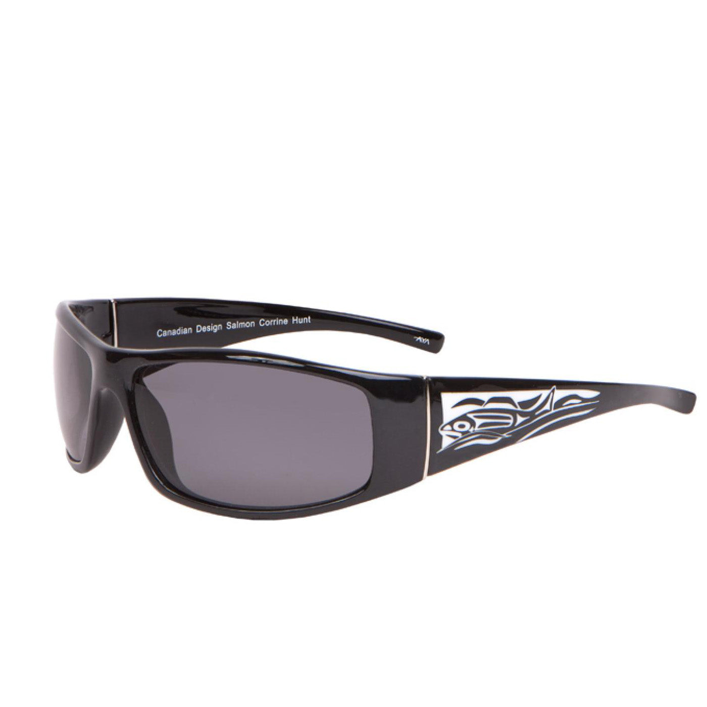 Men's Polarized Sunglasses, featuring a Salmon design, by Corrine Hunt. Available in Black/White and Matte Black.