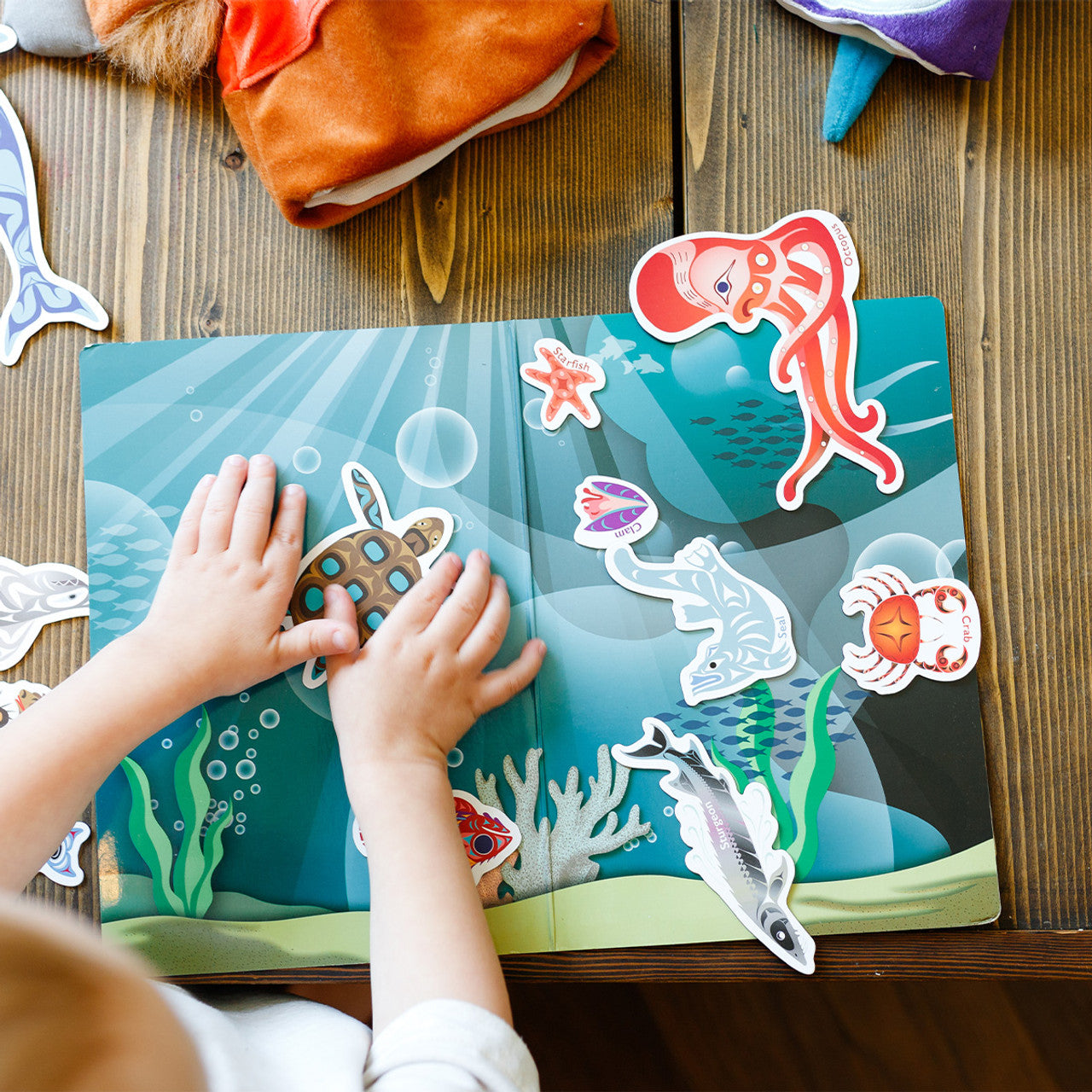 Dive beneath the waves with this magnetic play set inspired by the rich marine life of the Salish Sea. Featuring vibrant Indigenous artwork, Perfect for children aged 3 and up develop fine motor skills, storytelling abilities, and a love for nature. Each set includes two magnetic sticker sheets and an ocean-themed fold-out play scene. Made with responsibly sourced materials and printed with child-safe, non-toxic inks. CPC certified and produced in a BSCI-certified workplace.