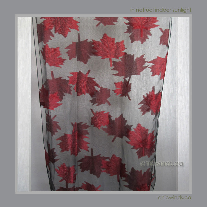 Delicate and light weight poly chiffon scarf / shawl covered with beautiful original maple leaf design.