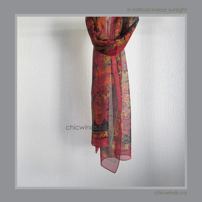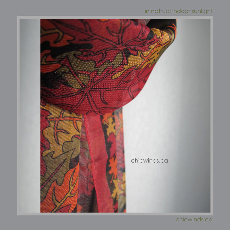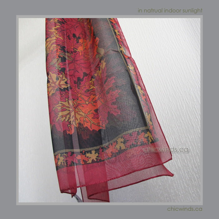 Maple Leaf Scarf Collection. Soft poly chiffon fabric.