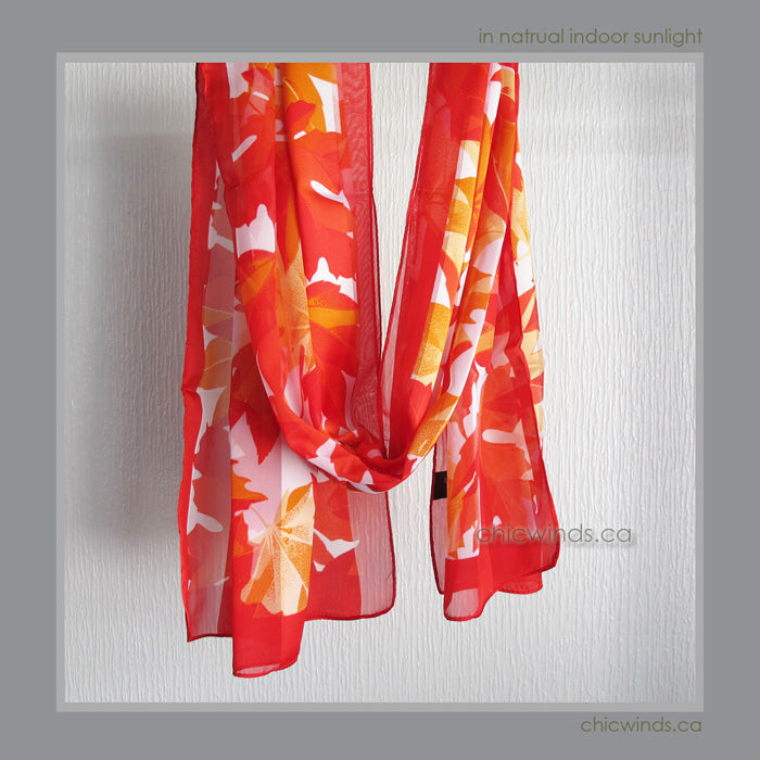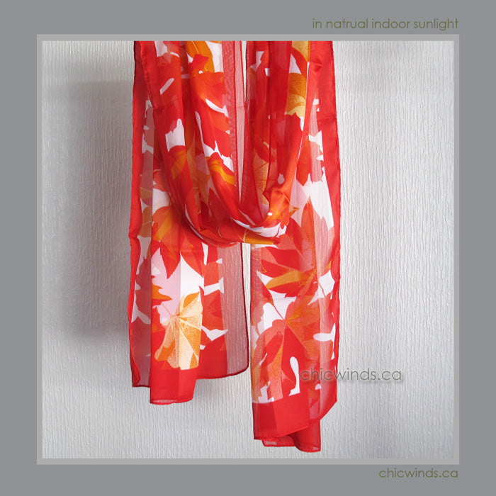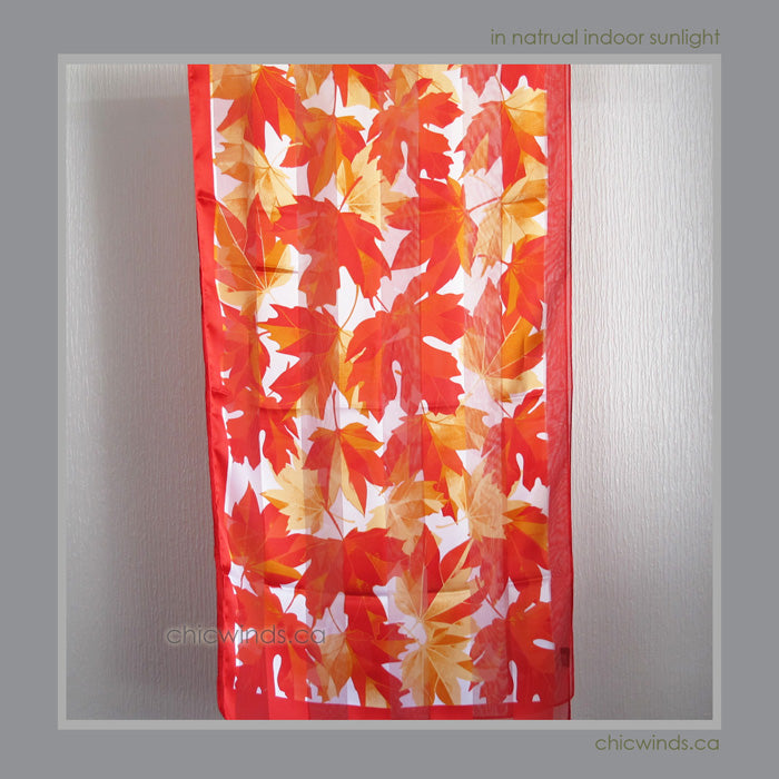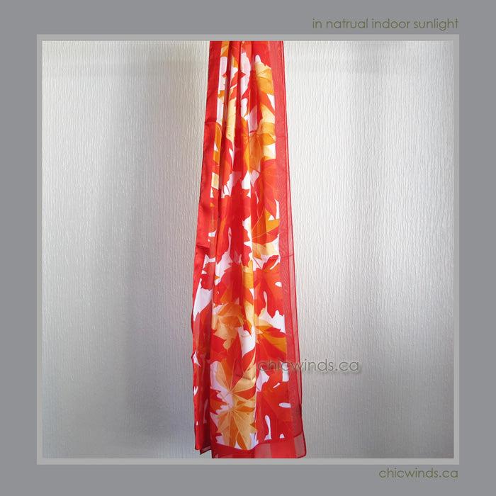Poly Satin Scarves with Maple Leaf motif design.