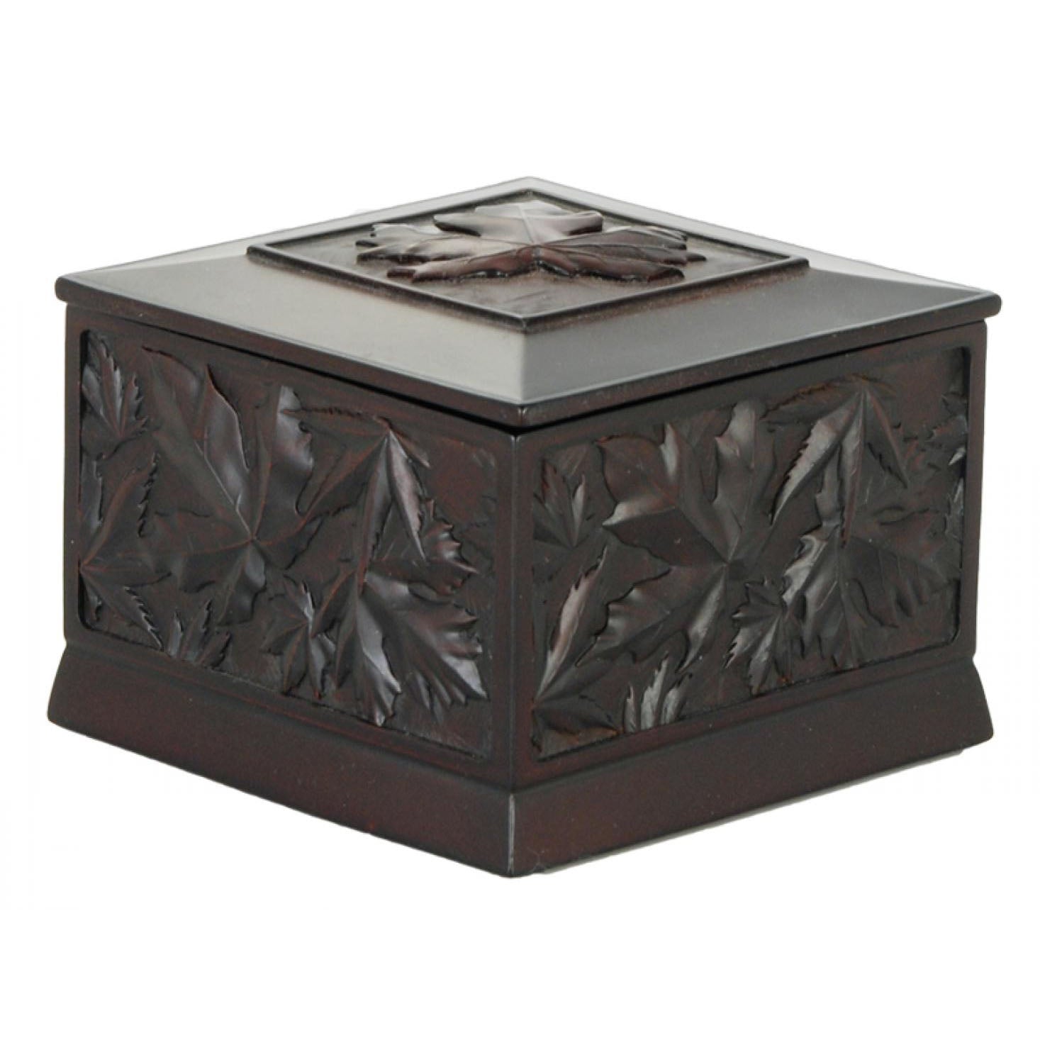 Maple Leaf Box in recycled glass, rosewood color.