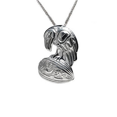 Native Art Silver Pendant Necklace - Raven Clamshell