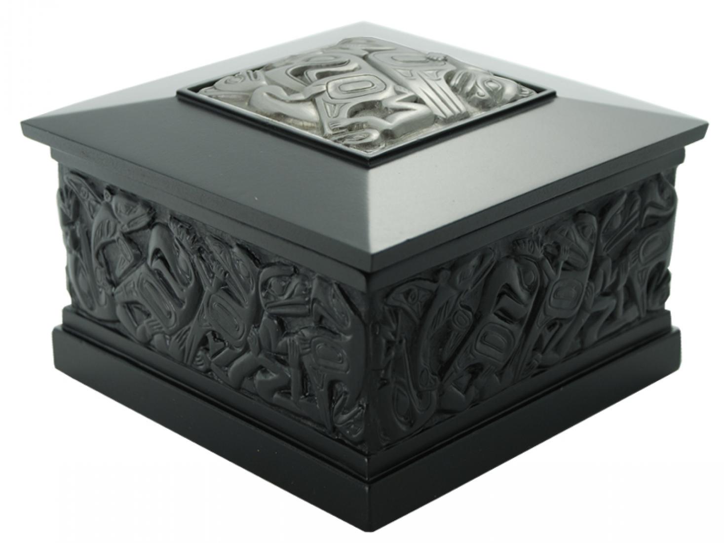 - The Northwest Coast Natives have a perception of oneness of all earth's creatures, human and animal. They believe that humans may transform into animals, birds, fish and mythical creatures and back again. Once transformed they take on the essence and spirit of that being. Their art reflects this transformation and is carved into this box made of crushed black marble.