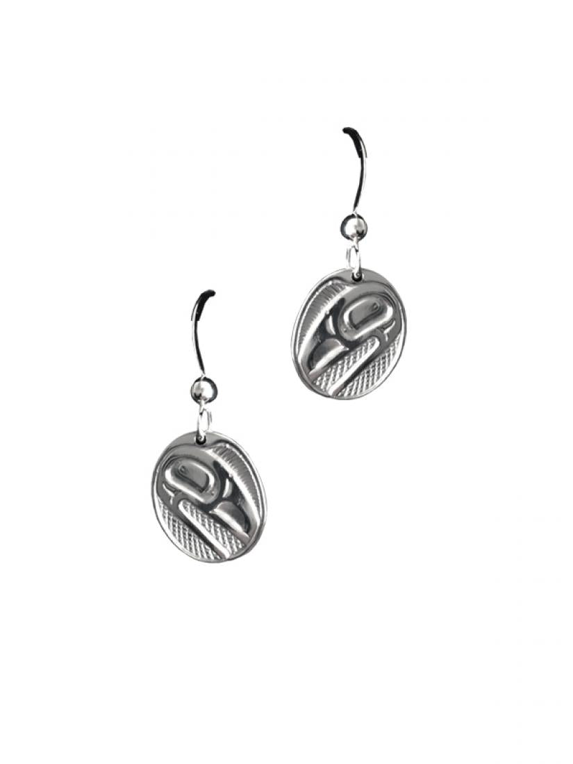 Oval shape earrings "Raven Sunlight", designed by native artist Bill Helin . Raven is a symbol of knowledge, creativity and humour.