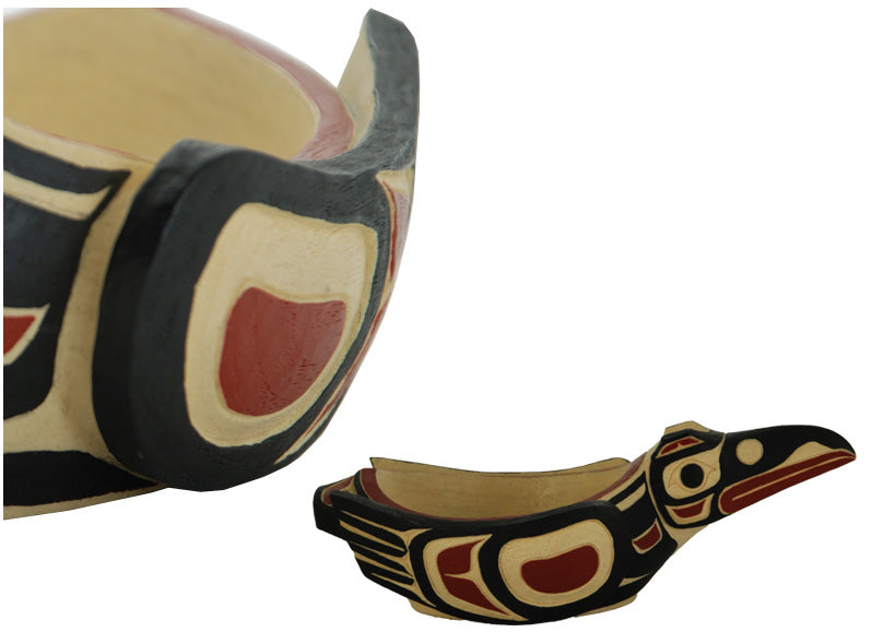This bowl is a contemporary representation of the bowl and serving pieces used during the potlatches and feasts held by the native people of the Northwest Coast.
