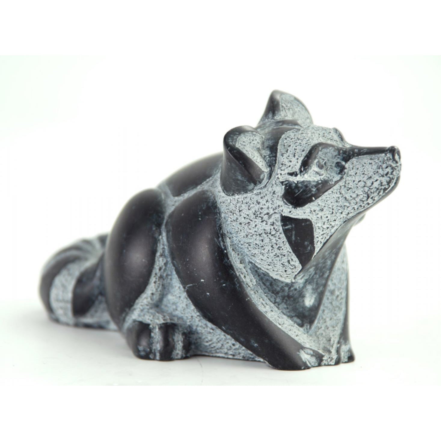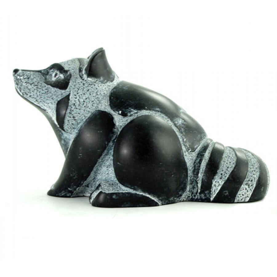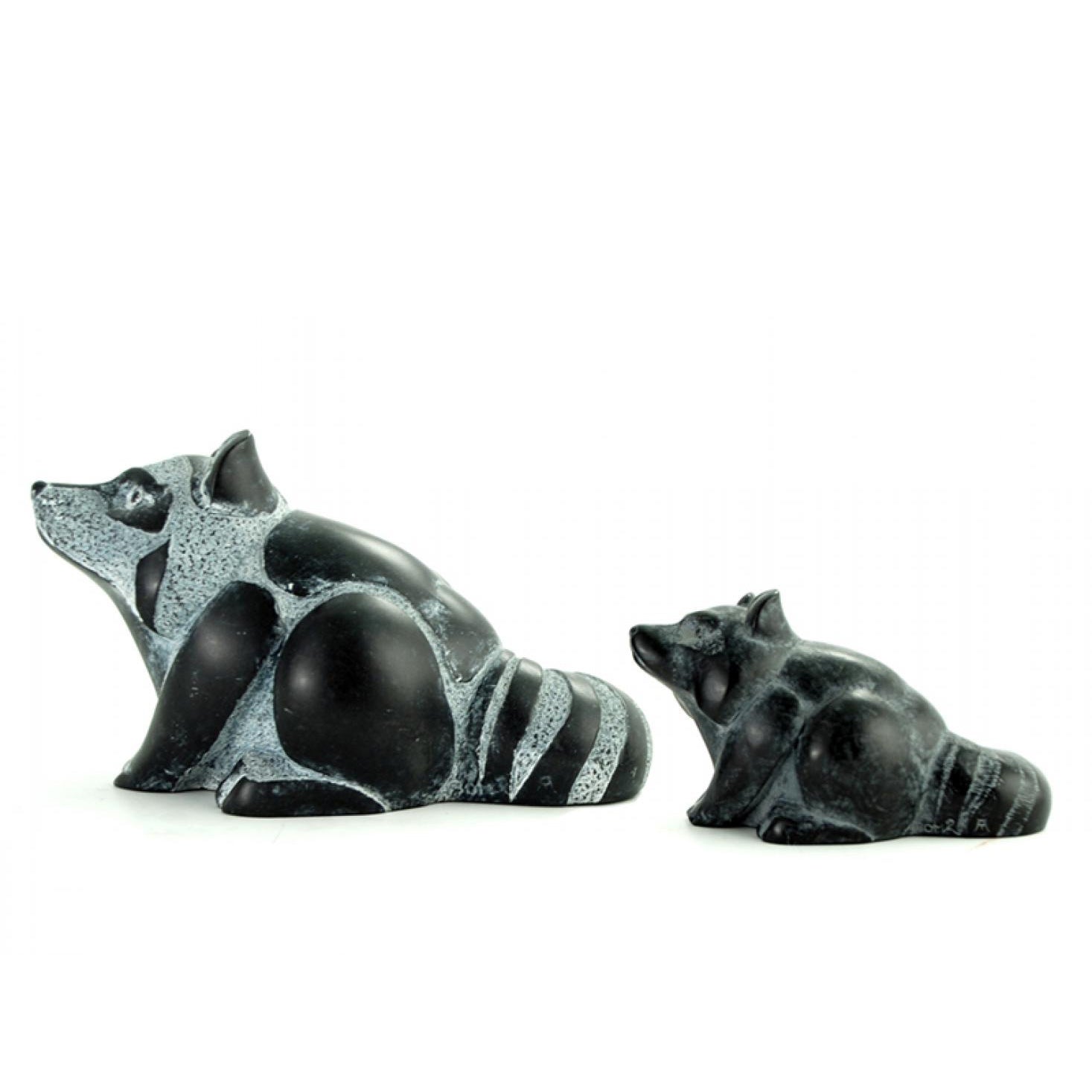 This sculpture captures the raccoon's poised attentiveness in a stylized stone-carved form. Its layered textures and soft matte finish are achieved through a blend of natural minerals and resin, hand-polished to evoke the feel of soapstone. Made in Canada, it carries the weight of tradition with a lightness of spirit.