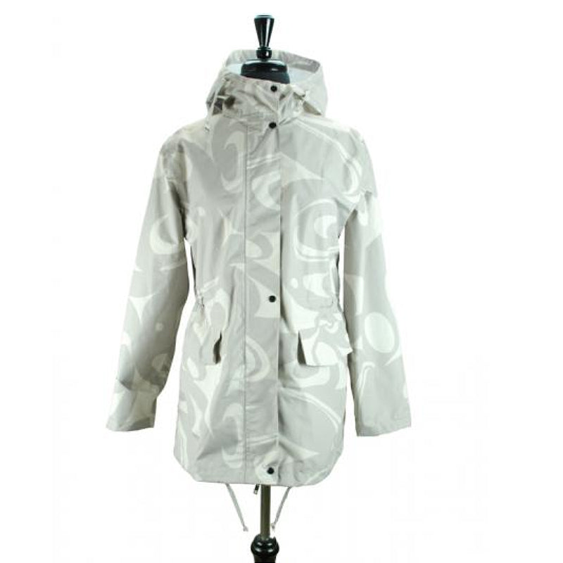 Stay dry in style with this lightweight waterproof rain coat, featuring the 3 Eagle design by Indigenous artist Corrine Hunt (Kwakwaka’wakw, Tlingit). Known for her modern interpretations of traditional forms, Corrine uses interconnected contemporary design to represent the eagle—a powerful First Nations symbol of vision, strength, and community.