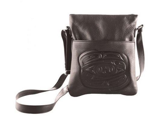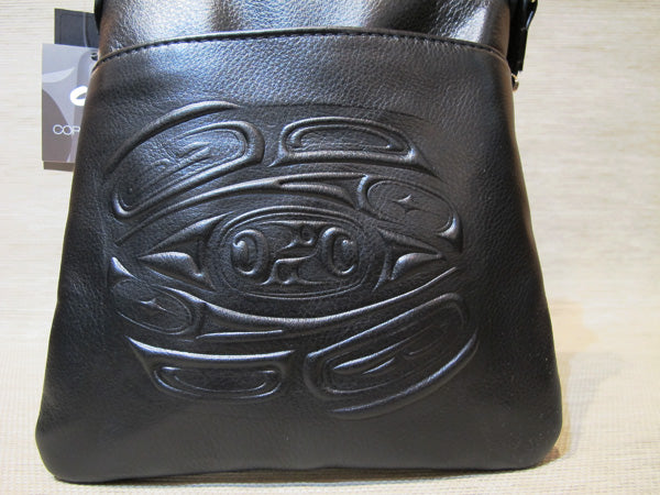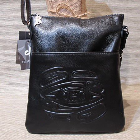 Leather embossed Solo Bag with a Raven Design by Corrine Hunt.
