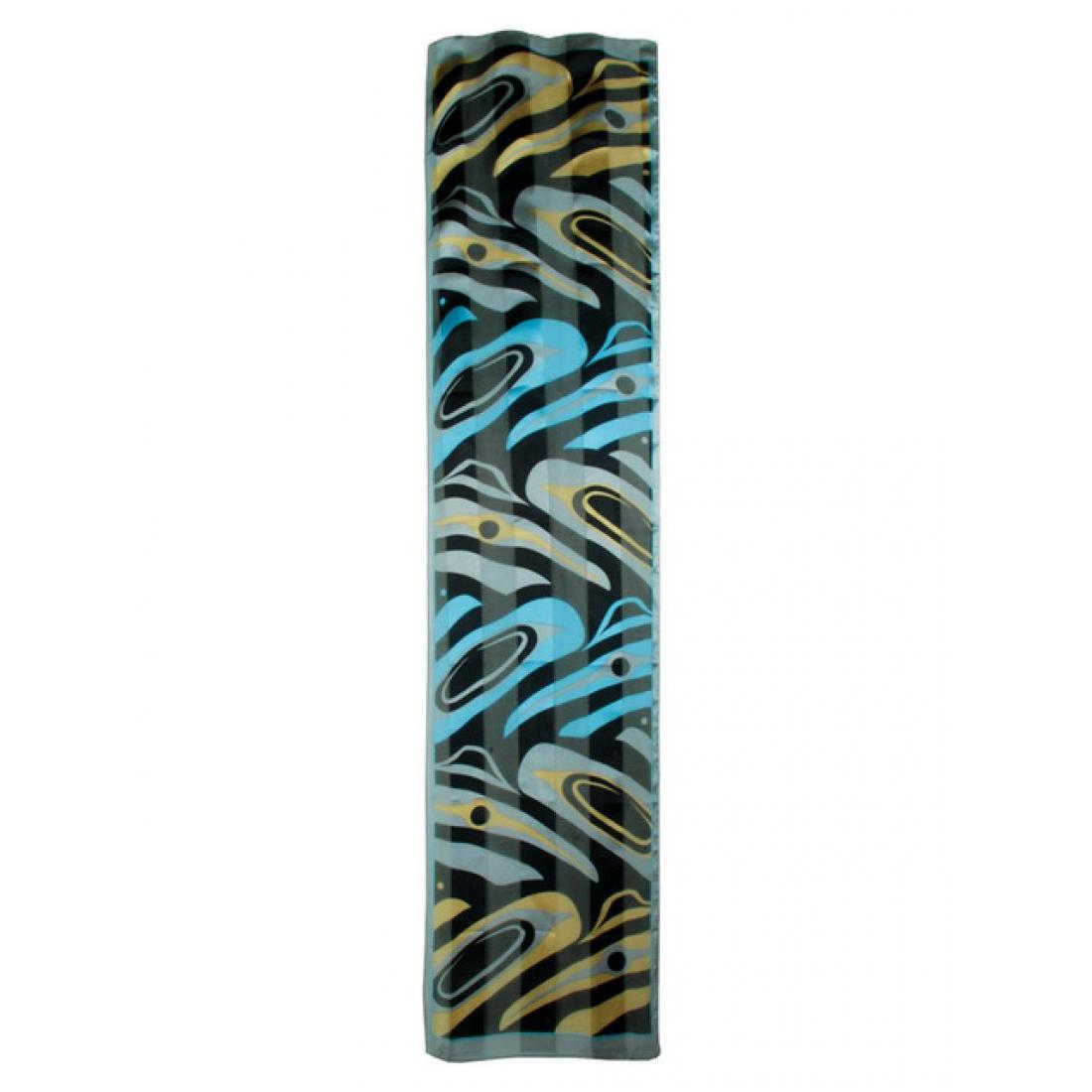 This flowing silk scarf features the bold Raven design by artist Jim Charlie, symbolizing transformation and insight.