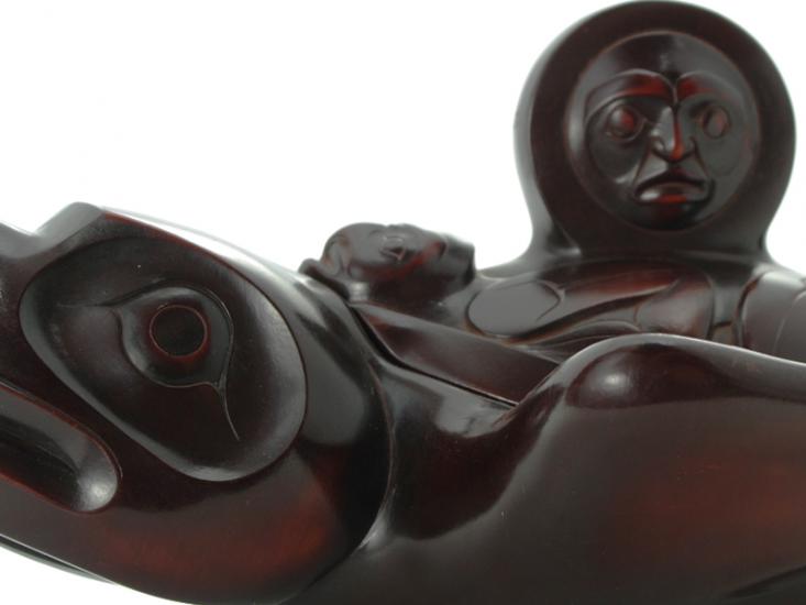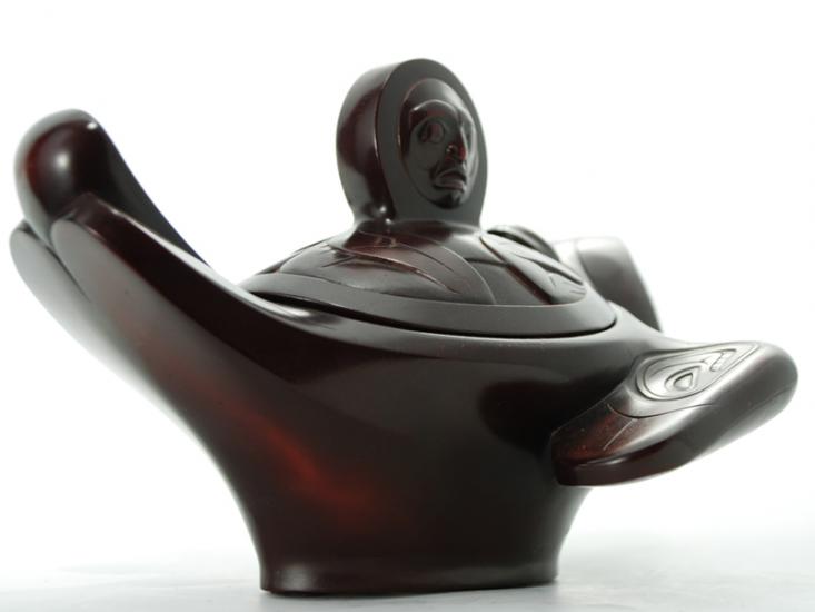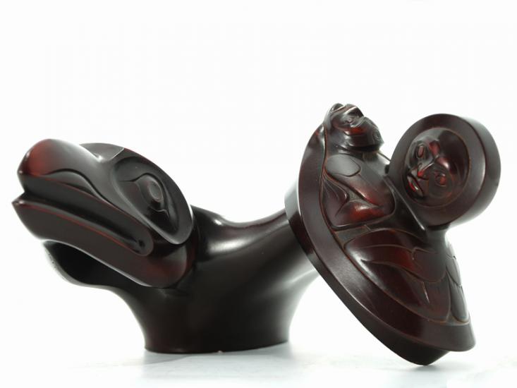 Sculpted by West Coast artist Thomas McPhee, this Raven Spirit Box is a striking fusion of form and meaning. Made from crushed marble and polished through multiple stages, the rosewood-toned finish brings out the layered details and fluid lines that define this powerful figure.