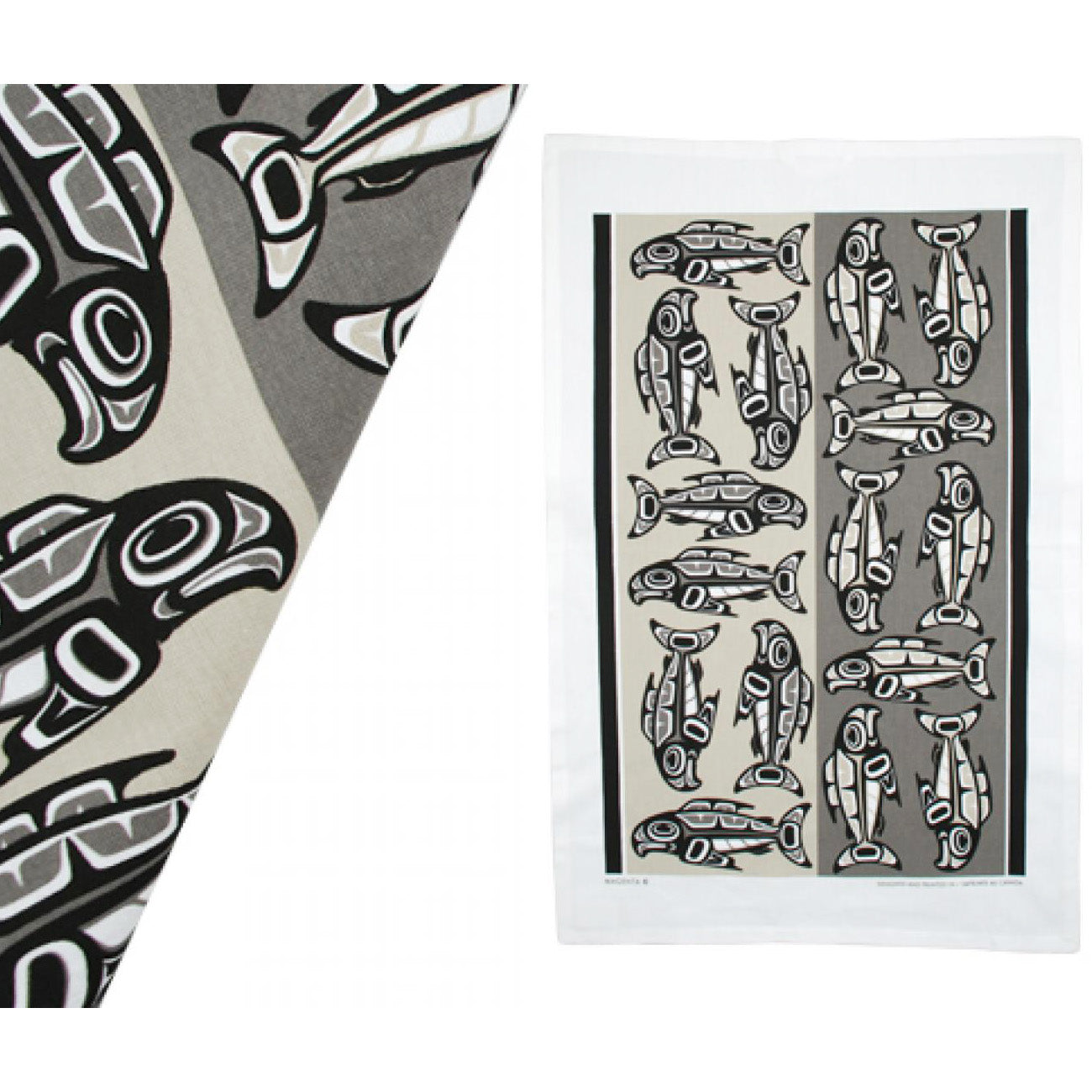 Tea Towel with Salmon design by Coast Salish artist Jim Charlie.
