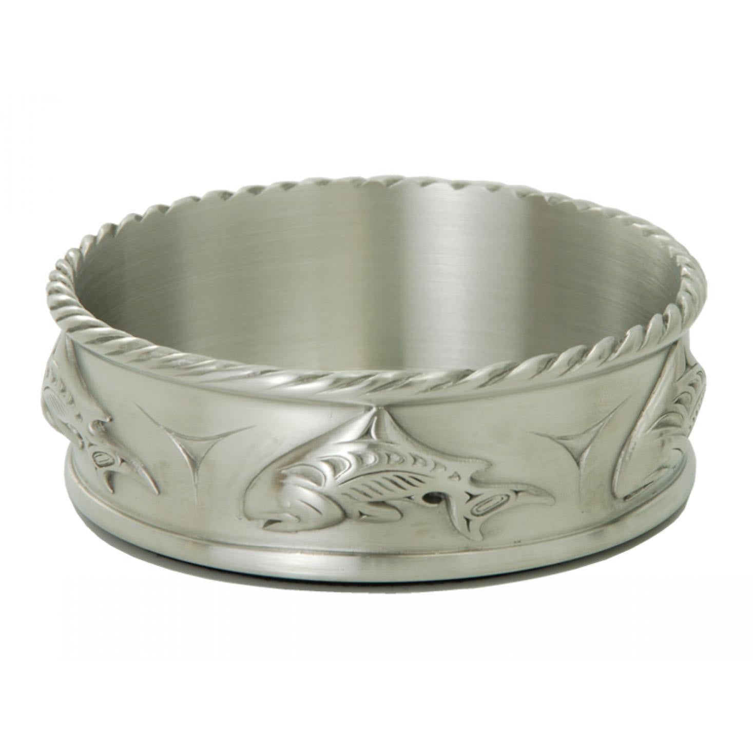 Wine coaster made of fine lead free pewter featuring West Coast Indigenous Salmon design.